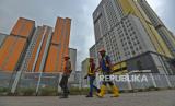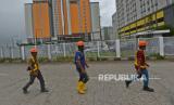 REPUBLIKA.CO.ID, JAKARTA -- Sejumlah pekerja berjalan di kawasan Wisma Atlet, Kemayoran, Jakarta, Kamis (19/3/2020). Presiden Joko Widodo memerintahkan Menteri BUMN Erick Thohir dan Menteri PUPR Basuki Hadimuljono segera menyiapkan Wisma Atlet sebagai tempat pelayanan kesehatan bagi pasien yang terjangkit virus corona atau COVID-19 sehingga bisa dipakai pada Senin (23/3/2020).