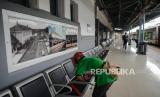 Petugas Kerata Api menempelkan stiker tanda silang di kursi tunggu di Stasiun Pasar Senen, Jakarta, Kamis (19/3). kegiatan tersebut guna memberikan tanda pembatas kepada pengguna Kereta Api agar dapat menjaga jarak dengan penumpang lain sebagai upaya penerapan himbauan social distancing untuk menghambat penyebaran virus corona (covid-19) di wilayah Stasiun Pasar Senen. . Foto : Thoudy Badai(Thoudy Badai/Republika) (FOTO : Thoudy Badai/Republika)