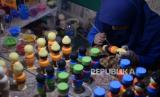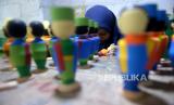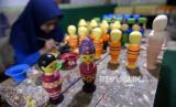 REPUBLIKA.CO.ID, YOGYAKARTA -- Perajin mewarnai boneka kayu di Barokah Craft, Pakem, Sleman, Yogyakarta, Kamis (19/3).