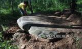 Warga yang tergabung dalam Kelompok Sadar Wisata (Pokdarwis) menemukan batu megalit berupa Dolmen atau meja batu di Desa Arjasa, Kecamatan Arjasa, Jember, Jawa Timur, Kamis (19/3). (Antara/Seno) (FOTO : Antara/Seno)