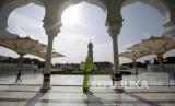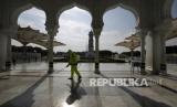 penyemprotan cairan disinfektan di komplek Masjid Baiturrahman, Banda Aceh, sebelum pelaksanaan ibadah shalat Jumat, (20/3). (FOTO : EPA-EFE/Hotli Simanjuntak)