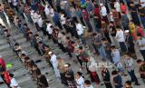 Umat muslim melaksanakan shalat Jumat di Masjid Nasional Al Akbar Surabaya, Jawa Timur, Jumat (20/3/2020). (Antara/Zabur Karuru) (FOTO : Antara/Zabur Karuru)