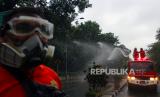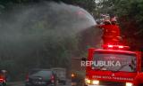 REPUBLIKA.CO.ID, TANGERANG -- Truk pemadam kebakaran dilibatkan untuk menyemprotkan cairan disinfektan ke jalanan di dua kota berbeda.