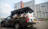 Petugas Palang Merah Indonesia (PMI) bersiap untuk penyemprotan cairan disinfektan pada Wisma Atlet di Kemayoran, Jakarta, Sabtu (21/3). Pemerintah menyiapkan Wisma Atlet Kemayoran sebagai rumah sakit darurat penanganan virus COVID-19 serta akan menjadi rumah isolasi bagi pasien yang rencannya akan siap beroprasi pada Senin (23/3). (Prayogi/Republika ) (FOTO : Prayogi/Republika )