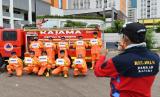REPUBLIKA.CO.ID, JAKARTA -- Relawan Badan Nasional Penanggulangan Bencana (BNPB) dan Palang Merah Indonesia (PMI) membawa tulisan "Kami Tetap Bekerja Untuk Kalian, Kalian Tetap di Rumah Untuk Kami" di Wisma Atlet, Kemayoran, Jakarta, Sabtu (21/3/2020).