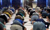 Jarak Antarshaf Jamaah Shalat. Jamaah menunaikan ibadah shalat dengan jarak di Masjid Siti Djirzanah, Yogyakarta, Ahad (22/3). Pemberian jarak 50 cm antarjamaah ini untuk antisipasi penyebaran virus corona atau covid 19. Selain itu, juga penyediaan sabun cuci tangan dan handsanitizer untujamaah. Wihdan/ Republika(Wihdan Hidayat/ Republika) (FOTO : Wihdan Hidayat/ Republika)