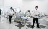 Presiden Joko Widodo (kedua kiri) didampingi Menteri BUMN Erick Thohir (ketiga kiri) berada di ruang IGD saat meninjau Rumah Sakit Darurat Penanganan COVID-19 Wisma Atlet Kemayoran, Jakarta, Senin (23/3). (FOTO : Antara/Hafidz Mubarak A)