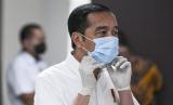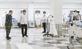 Tinjau RS Darurat. Presiden Joko Widodo melihat peralatan medis di ruang IGD saat meninjau Rumah Sakit Darurat Penanganan COVID-19 Wisma Atlet Kemayoran, Jakarta, Senin (23/3/2020). Dalam kunjungannya Presiden Joko Widodo memastikan Rumah Sakit Darurat Penanganan COVID-19 Wisma Atlet Kemayoran siap digunakan untuk menangani 3.000 pasien. (FOTO : ANTARA FOTO/Hafidz Mubarak A/Pool)