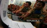 Guru memantau jawaban siswa lewat komputer saat latihan Ujian Nasional di SMAN 2 Kota Tegal, Jawa Tengah, Kamis (19/3/2020). Latihan UN secara daring di sekolah tersebut selama pukul 08 (FOTO : ANTARA FOTO)