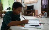 Pelajar belajar dari rumah di Ambarketawang, Gamping, Sleman, Daerah Istimewa Yogyakarta, Senin (23/3/2020). Pemda DIY mengeluarkan kebijakan bagi semua pelajar belajar dari rumah pada 23 Maret 2020 hingga 31 Maret 2020 guna mengurangi interaksi sosial sebagai upaya mencegah penyebaran virus corona (COVID-19) (FOTO : Antara Foto)