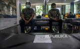Nasabah saat menunggu antrean di Plaza Mandiri, Jakarta, Senin (23/3). Bank Mandiri menerapkan kebijakan pengaturan jarak atau social distancing di area pelayanan nasabah untuk mengantisipasi penyebaran virus Corona atau Covid-19. (FOTO : Putra M. Akbar/Republika)