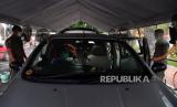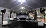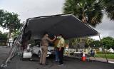 REPUBLIKA.CO.ID, SURABAYA -- Bilik penyemprotan disinfektan untuk kendaraan disiapkan di Gedung Grahadi, Surabaya, Jawa Timur, Senin (23/3/2020). Bilik tersebut wajib dilewati setiap kendaraan yang akan masuk ke area gedung guna mencegah penyebaran Virus Corona (COVID-19). Para pengunjung yang akan memasuki gedung juga dicek suhu tubuhnya oleh petugas.