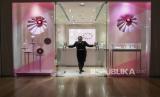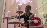 Penjaga toko membersihkan produk dagangannya di Plaza Indonesia, Jakarta, Selasa (24/3/2020). (FOTO : ANTARA/Muhammad Adimaja)