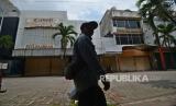 REPUBLIKA.CO.ID, JAKARTA -- Warga berjalan melintasi sejumlah toko yang tidak beroperasi di kawasan perdagangan Pasar Baru, Jakarta, Selasa (24/3/2020).