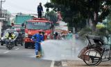 Penyemprotan yang dilaksanakan di sejumlah titik jalan protokol, pedestrian, dan jalan penyeberangan orang (JPO) guna memutus mata rantai penyebaran wabah Virus Corona (COVID-19).