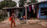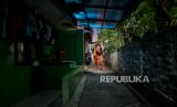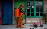 Petugas menyemprotkan cairan disinfektan di kawasan pemukiman warga di Jalan Pejaten, Pasar Minggu, Jakarta Selatan, Kamis (26/3). Penyemprotan dikawasan pemukiman tersebut dilakukan secara swadaya warga setempat guna mengantisipasi penyebaran COVID-19 (FOTO : Thoudy Badai/Republika)