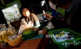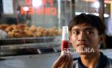 REPUBLIKA.CO.ID, YOGYAKARTA -- Mahasiswa dari Aliansi Mahasiswa Yogyakarta membagikan handsanitizer pedagang di Pasar Kotagede, Yogyakarta, Kamis (26/3).