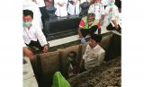 Presiden Jokowi ikut memakamkan jenazah sang Ibu di pemakaman keluarga Mundu, Selokaton, Gondangrejo, Karanganyar, Jawa Tengah, Kamis (26/3). (FOTO : dok istimewa)