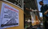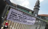 Papan pengumuman menghentikan ibadah shalat jumat di depan Masjid Nurul Inayah Kecamatan Bandung Kidul, Kota Bandung, Jumat (26/3). DKM setempat memutuskan untuk tidak menggelar shalat Jumat hingga waktu yang ditentukan sesuai anjuran MUI dan Pemkot Bandung terkait penyebaran wabah corona (FOTO : Yogi Ardhi/Republika)