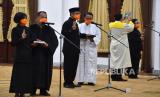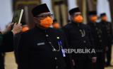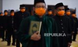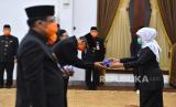 REPUBLIKA.CO.ID, SURABAYA -- Sejumlah Aparatur Sipil Negara (ASN) eselon III dan IV mengikuti pengambilan sumpah jabatan di Gedung Negara Grahadi, Surabaya, Jawa Timur, Jumat (27/3/2020).