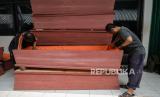 REPUBLIKA.CO.ID, JAKARTA -- Petugas Bidang Pelayanan DKI Jakarta membuat peti jenazah khusus untuk pasien COVID-19 yang meninggal dunia di Jakarta, Sabtu (28/3). Pemprov DKI Jakarta bersama Dinas Pertamanan dan Pemakaman menyediakan peti jenazah khusus serta SOP mengenai pelaksanaan dan pemulasaran jenazah pasien COVID-19 sebagai upaya mencegah penyebaran COVID-19. Dalam sehari petugas mampu menyelesaikan sebanyak 15 sampai 20 peti jenazah.