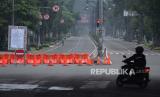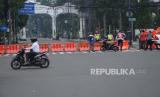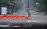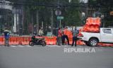 Untuk mengantisipasi peyebaran wabah Corona atau Covid-19 Polrestabes Bandung melakukan penutupan sejumlah ruas jalan, seperti di Jalan Ir H Djuanda, Kota Bandung, Ahad (29/3). Selain itu, ruas jalan yang ditutup di antaranya Jalan Asia Afrika, Jalan Naripan, Jalan Braga dan Jalan Diponogoro (FOTO : Edi Yusuf/Republika)