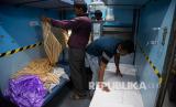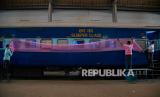 Para pekerja mengubah gerbong kereta api menjadi ruang isolasi untuk pasien corona atau covid-19 di Gauhati, India, Ahad (29/3). (FOTO : AP/Anupam Nath)