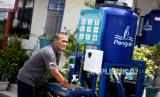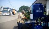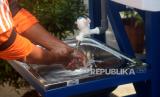REPUBLIKA.CO.ID, DEPOK -- Warga memanfaatkan fasilitas tempat cuci tangan di Terminal Depok, Jawa Barat, Senin (30/3).