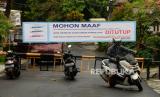Sepeda motor berputar balik di depan portal jalan yang ditutup di Komplek Pondok Jaya, Mampang Prapatan, Jakarta, Senin (30/3/). Komplek tersebut mulai memberlakukan akses satu pintu masuk utama dan menutup pintu lainnya untuk mematuhi kebijakan pemerintah dalam penanganan penyebaran virus Corona (COVID-19) (FOTO : Prayogi/Republika)