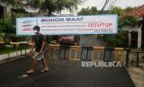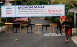 Seorang warga melintas di dekat portal jalan yang ditutup di Komplek Pondok Jaya, Mampang Prapatan, Jakarta, Senin (30/3/). Komplek tersebut mulai memberlakukan akses satu pintu masuk utama dan menutup pintu lainnya untuk mematuhi kebijakan pemerintah dalam penanganan penyebaran virus Corona (COVID-19) (FOTO : Prayogi/Republika)