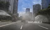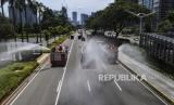 REPUBLIKA.CO.ID, JAKARTA -- Petugas gabungan menyemprotkan cairan disinfektan di sepanjang jalan Jenderal Sudirman-MH Thamrin, Jakarta, Selasa (31/3/2020).