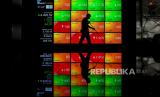 REPUBLIKA.CO.ID, JAKARTA -- Petugas kebersihan melintas di depan layar yang menampilkan informasi pergerakan harga saham di gedung Bursa Efek Indonesia (BEI), Jakarta, Selasa (31/3/2020).