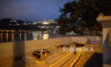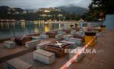 Suasana fasilitas publik yang ditutup di Deep Water Bay, Hong Kong, Senin (30/3). Leisure and Cultural Services Departmen (LCSD) Hong Kong menutup semua fasilitas publik yang biasa digunakan sebagai tempat berkumpulnya orang-orang di wilayah tersebut untuk mencegah penyebaran virus corona. (FOTO : EPA/Jerome Favre)