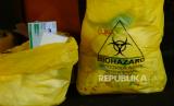 Sampah medis yang dihasilkan pada tes cepat Covid-19 di kompleks Gedung Sate, Bandung, Selasa (31/3). Pemprov Jawa Barat melakukan uji cepat Covid-19 terhadap Aparatur Sipil Negara (ASN) dan awak media yang bekerja di Komplek Pemerintahan Gedung Sate untuk mengantisipasi penyebaran SARS CoV-2 penyebab Covid-19 (FOTO : Yogi Ardhi/Republika)