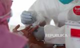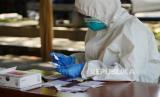 Petugas Labkesda Provinsi Jawa Barat meneteskan cairan reagen pada alat tes cepat Covid-19 di kompleks Gedung Sate, Bandung, Selasa (31/3). Pemprov Jawa Barat melakukan uji cepat Covid-19 terhadap Aparatur Sipil Negara (ASN) dan awak media yang bekerja di Komplek Pemerintahan Gedung Sate untuk mengantisipasi penyebaran SARS CoV-2 penyebab Covid-19 (FOTO : Yogi Ardhi/Republika)