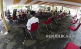 Antrean peserta tes cepat Covid-19 di kompleks Gedung Sate, Bandung, Selasa (31/3). Pemprov Jawa Barat melakukan uji cepat Covid-19 terhadap Aparatur Sipil Negara (ASN) dan awak media yang bekerja di Komplek Pemerintahan Gedung Sate untuk mengantisipasi penyebaran SARS CoV-2 penyebab Covid-19 (FOTO : Yogi Ardhi/Republika)