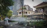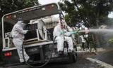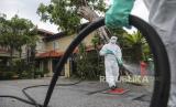 Petugas Alam Flora mengenakan pakaian pelindung saat menyemprotkan disinfektan di kediaman pribadi Perdana Menteri Malaysia Muhyiddin Yassin di Kuala Lumpur, Malaysia, Senin (30/3). Menurut laporan media, setidaknya terdapat 2 (FOTO : EPA-EFE/FAZRY ISMAIL)