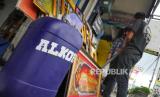 Pedagang pigura di kawasan Kosambi Bandung memanfaatkan momentum wabah corona dengan berjualan cairan Alkohol 70% dan masker. Selain cairan alkohol mereka juga meyedian botol kosong penyemprot sebagai pelengkap (FOTO : Yogi Ardhi/Republika)