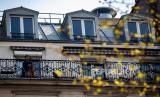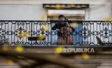 Seorang musisi memainkan cello di balkon rumahnya di pusat kota Paris, Prancis, Sabtu (28/3). Prancis menerapkan kebijakan Lockdown sebagai upaya untuk menghentikan penyebaran virus corona (FOTO : EPA-EFE/IAN LANGSDON)