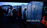 Sejumlah santri antre masuk ke dalam bilik disinfektan saat tiba di Terminal Tegal, Jawa Tengah, Selasa (31/3/2020). Dinas Kesehatan Kota Tegal memeriksa sebanyak 120 santri asal Tegal yang pulang dari Pondok Pesantren Lirboyo, Jawa Timur untuk mengetahui kondisi kesehatan mereka dalam upaya antisipasi penyebaran COVID-19 (FOTO : Oky Lukmansyah/ANTARA FOTO)