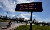 Papan digital menyerukan kepada orang-orang untuk menjaga jarak sosial di Dresden, Jerman, Senin (30/3). (FOTO : EPA)