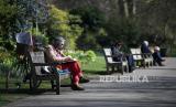 Pengunjung taman menjaga jarak fisik di bangku di Taman St Jame, London Inggris, Selassa (24/3). Perdana Menteri Inggris Johnson telah menerapkan langkah-langkah jarak sosial yang melarang pertemuan dan kelompok sosial yang terdiri lebih dari dua orang (FOTO : EPA)
