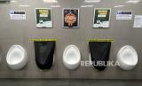 Beberapa urinoir sengaja tidak gunakan untuk memberikan jarak lebih jauh untuk di London, Senin (30/3). (FOTO : AP)