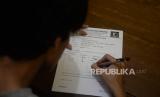 Warga mengisi formulir serah terima kucing yang diberikan kepada Rumah Kucing Parung. (FOTO : PRAYOGI/REPUBLIKA)
