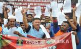 Warga binaan melakukan sujud syukur usai menerima surat kelengkapan pembebasan di Rutan Klas IIB Kabupaten Batang, Jawa Tengah, Kamis (2/4/2020). Rutan tersebut membebaskan 45 warga binaan dengan status asimilasi yang pembebasan bersyaratnya sudah jatuh tempo dua pertiga masa pidana dengan tujuan untuk mencegah penyebaran wabah virus Corona (COVID-19) (FOTO : ANTARA FOTO/Harviyan Perdana Putra)