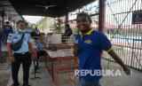 Seorang warga binaan berjalan sambil tersenyum menuju pintu penjagaan seusai dibebaskan di Lembaga Permasyarakatan Kelas II A Lambaro, Banda Aceh, Aceh, Kamis (2/4/2020). Kementerian Hukum dan HAM membebaskan sebanyak 1.362 warga binaan dewasa dan anak di provinsi Aceh untuk menjalani asimilasi di rumah sebagai upaya mencegah penyebaran COVID-19. (FOTO : Antara/Ampelsa)