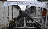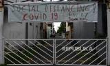 Suasana depan pintu masuk Kampung Pucang Sewu yang melakukan karantina wilayah, Surabaya, Jawa Timur, Minggu (5/4/2020). Karantina wilayah tersebut dilakukan oleh warga di kampung itu guna mencegah penyebaran Virus Corona (COVID-19) (FOTO : ANTARA/Zabur Karuru)