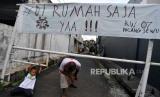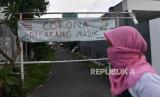 Warga melintas di depan pintu masuk Kampung Pucang Sewu yang melakukan karantina wilayah, Surabaya, Jawa Timur, Minggu (5/4/2020). Karantina wilayah tersebut dilakukan oleh warga di kampung itu guna mencegah penyebaran Virus Corona (COVID-19) (FOTO : ANTARA/Zabur Karuru)