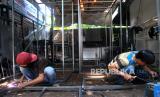 Pekerja menyelesaikan proses pembuatan bilik disinfektan di bengkel listrik Berkah Jasa Teknik, jalan raya Cifor, Kelurahan Bubulak, Kota Bogor, Jawa Barat, Minggu (5/4/2020). Produksi bilik disinfektan dari bahan besi dan alumunium foil tersebut sedikitnya berjumlah 20 bilik yang dipesan untuk sejumlah pasar tradisional, kantor desa dan kelurahan di wilayah Kota dan Kabupaten Bogor sebagai upaya pencegahan penyebaran virus Corona (COVID-19) (FOTO : ANTARA/Arif Firmansyah)