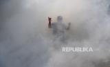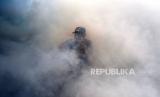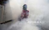 Kegiatan fogging ini yang dilakukan di kawasan Pondok Jaya, Cipayung, Depok, Jabar, Minggu (5/4). DBD termasuk wabah mematikan dengan jumlah fatalitas cukup tinggi.